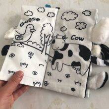 Second time buying cloth books for my niece because she loved the first set! These books are fun and safe for little toddler, and it's interesting to play with. I liked the fine details of this set of cloth book, everything were well made and put together. My niece can't read yet so she's just enjoying the tails as toys, and I'm sure she can enjoy it a different way when she learns to read. Bright color and soft to the touch!