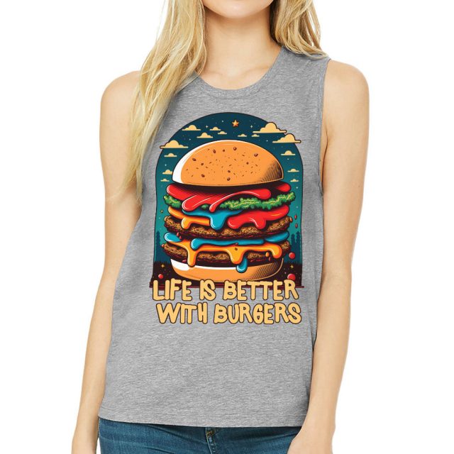 Burger Print Women’s Muscle Tank – Quote Tank Top – Illustration Workout Tank