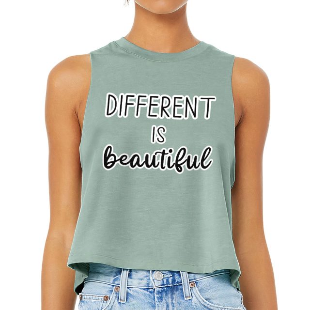 Different Is Beautiful Racerback Cropped Tank – Cute Design Women’s Tank – Graphic Tank Top