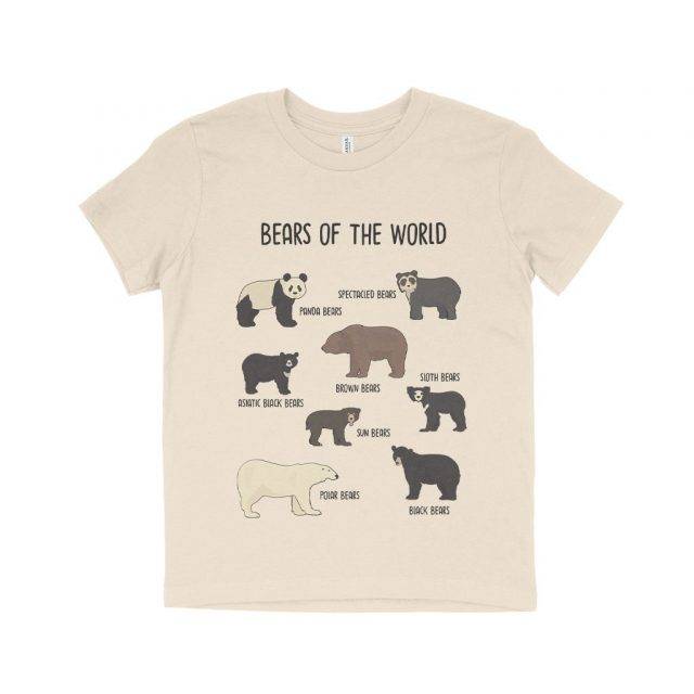 The Bears of the World T-shirt is the perfect way to show your love for nature’s most adorable creatures. With a cute encyclopedia-style print of bears from around the world, this t-shirt is sure to be a hit with animal lovers of all ages. Whether you’re taking a walk in the forest or just hanging out at home, make sure you’re wearing your Bears of the World T-shirt!