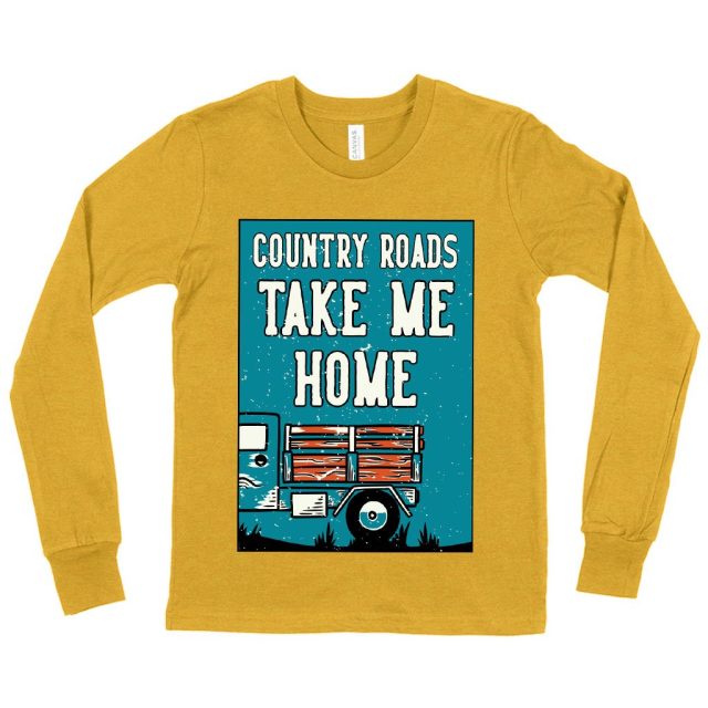 Comfy. Soft. Flexible. Kids’ Country Roads Take Me Home Long Sleeve T-Shirt that works for everyone For every child Our flexible fit provides comfortable wear for hours in sizes of S to L. The Airlume difference + composition Our Airlume clean cotton is combed and ring-spun for texture and feel…