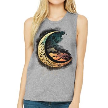 Moon Graphic Women’s Muscle Tank – Cool Art Tank Top – Printed Workout Tank