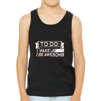 Wake Up and Be Awesome Kids’ Jersey Tank – Trendy Sleeveless T-Shirt – Funny Kids’ Tank Top