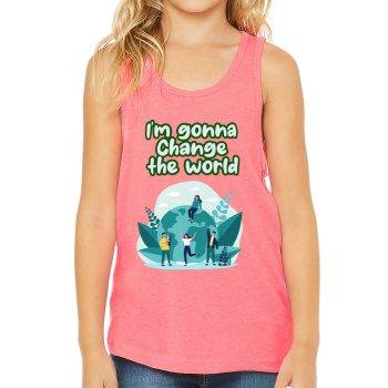 Change the World Kids’ Jersey Tank – Motivational Quotes Sleeveless T-Shirt – Illustration Kids’ Tank Top