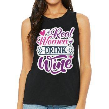 Real Women Women’s Muscle Tank – Wine Tank Top – Printed Workout Tank
