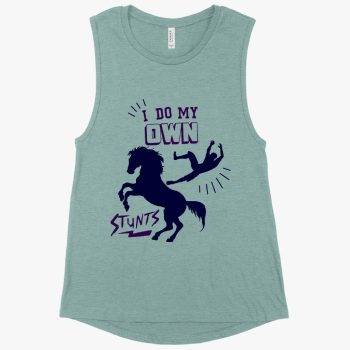 Women’s Muscle I Do My Own Stunts Tank – Horse Tanks with Sayings – Funny Quotes About Horse Riding
