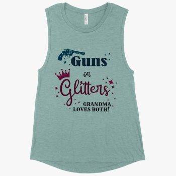 Women’s Muscle Guns or Glitters Grandma Loves Both Tank – Gender Reveal Tanks for Grandparents – Tanks for Grandma