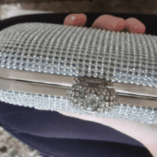 I’ve owned a little black dress and silver shoes for a long time, but I’ve never had a matching clutch to go with it. I bought this lovely silver clutch to complete my outfit for a business event. It’s a classic look with enough inside storage for the evening (lipstick, credit cards, money), but it won’t hold my large iPhone. It’s shiny but not overly so, which is tasteful for me. It can be carried in-hand or over the shoulder because it has a fine link chain strap that fits inside the clutch or comes outside. I like it very much. If it gets a little dirty, you can wipe if off with a mild soap solution.