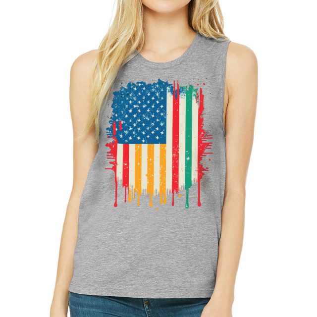 USA Flag Women’s Muscle Tank – Creative Tank Top – Patriotic Workout Tank