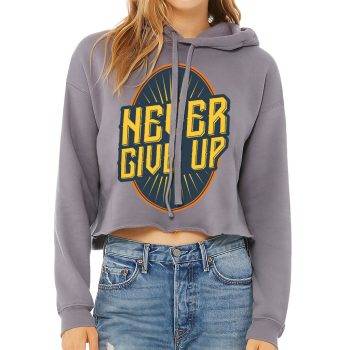 Never Give Up Women’s Cropped Hoodie – Motivational Cropped Hoodie – Cool Hooded Sweatshirt