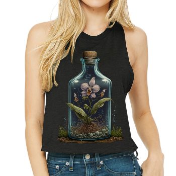 Themed Racerback Cropped Tank – Flower Bottle Women’s Tank – Printed Tank Top