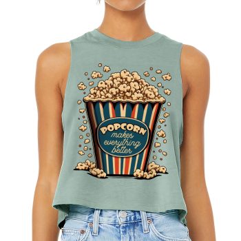 Popcorn Racerback Cropped Tank – Funny Design Women’s Tank – Printed Tank Top