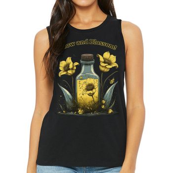 Yellow Flowers Women’s Muscle Tank – Grow and Blossom Tank Top – Art Workout Tank