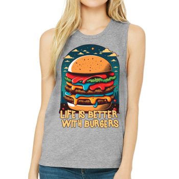 Burger Print Women’s Muscle Tank – Quote Tank Top – Illustration Workout Tank
