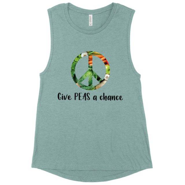 Women’s Muscle Give Peas a Chance Funny Vegan Tank – Vegan Print Tank – Vegetarian Funny Tanks