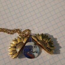 Send the message of love and appreciation with this beautifully-crafted sunflower necklace with a moving message inside.